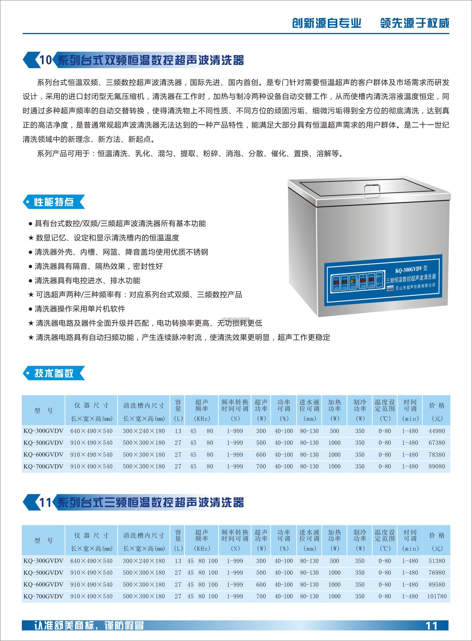 KQ-600GVDV雙頻恒溫數控超聲波清洗器
