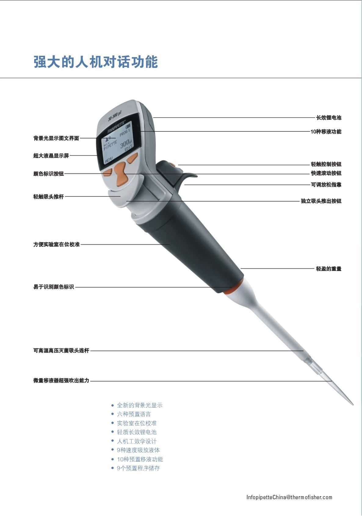 Finnpipette Novus是一支提供多種語言界面的電動移液器。提供包括英語、法語、意大利語、德語、西班牙語在內的六種語言界面的移液器??梢苑奖銖?/span>“OPTAIN”菜單更換語言界面。新款提供全中文版本,特別適合中國用戶使用。
